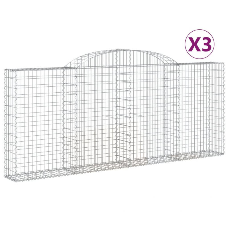 Gabionen mit Hochbogen 3 Stk. 300x30x120/140cm Verzinktes Eisen