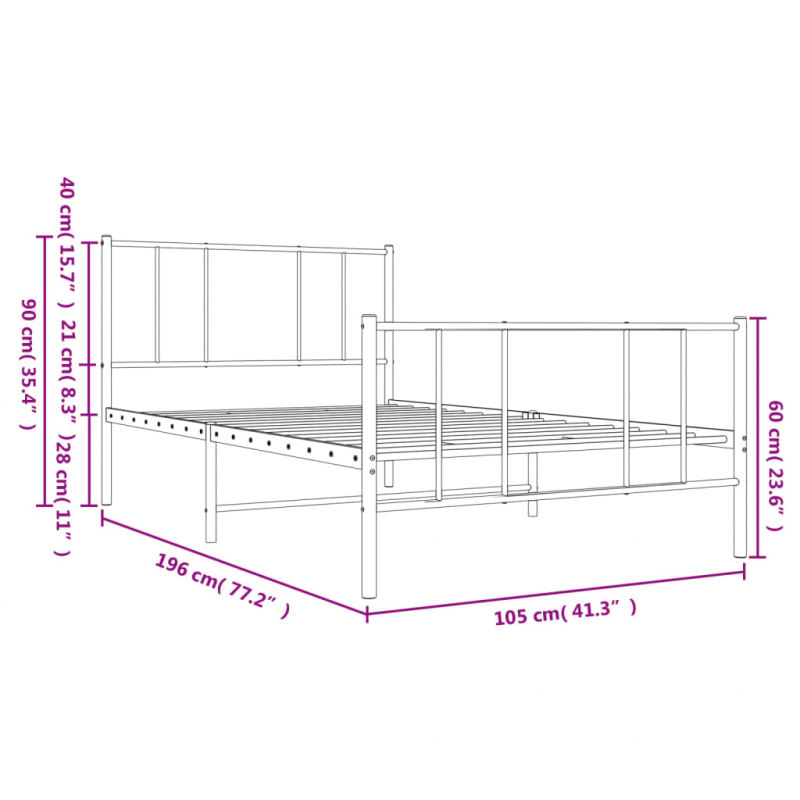 Bettgestell mit Kopf- und Fußteil Metall Weiß 100x190 cm
