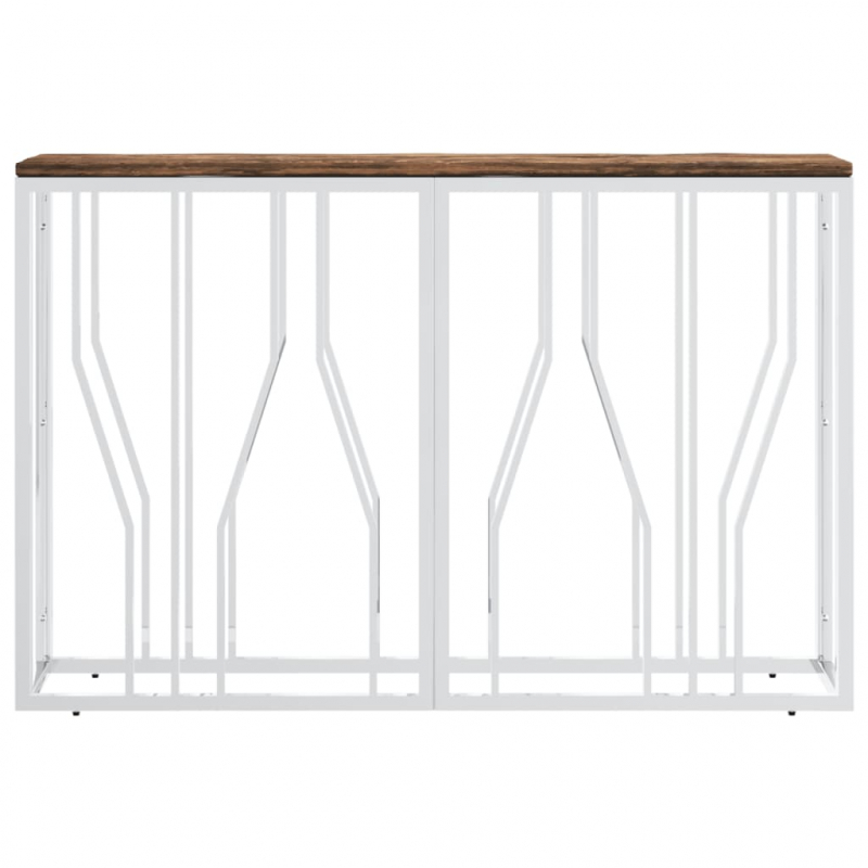 Dieser Konsolentisch vereint Funktionalität und Schönheit und wird der Mittelpunkt deines Zuhauses sein. Langlebiges Material: Edelstahl ist robust und langlebig und somit ist dieses Möbelstück für den langfristigen Einsatz vorgesehen. Außerdem ist es sehr korrosions- und rostbeständig.Massives Altholz: Massives Altholz besteht aus wiederverwendeten Holzarten wie Teakholz, Mangoholz, Kiefernholz und Buche. Diese Materialien werden aus alten Gebäuden wie Fabriken, Schuppen und Booten recycelt. Da jedes Stück handgefertigt ist, können die Farben bei jedem Produkt variieren.Stabile Tischplatte: Die Tischplatte eignet sich perfekt, um Dekoartikel, Bilderrahmen und Topfpflanzen zur Schau zu stellen.Vielseitig einsetzbar: Dieser Sofatisch ist überall in deinem Zuhause einsetzbar. Er kann als Eingangstisch, Couchtisch, Akzenttisch, TV-Tisch usw. verwendet werden. Achtung:Um ein Umkippen zu vermeiden, sollte dieses Produkt mit der mitgelieferten Wandhalterung gesichert werden.Gut zu wissen:Farben und Maserungen variieren von Möbelstück zu Möbelstück und machen jedes Stück zu einem Unikat. Die Lieferung erfolgt nach dem Zufallsprinzip, wodurch die Exklusivität und Individualität deines Möbels gewährleistet ist.