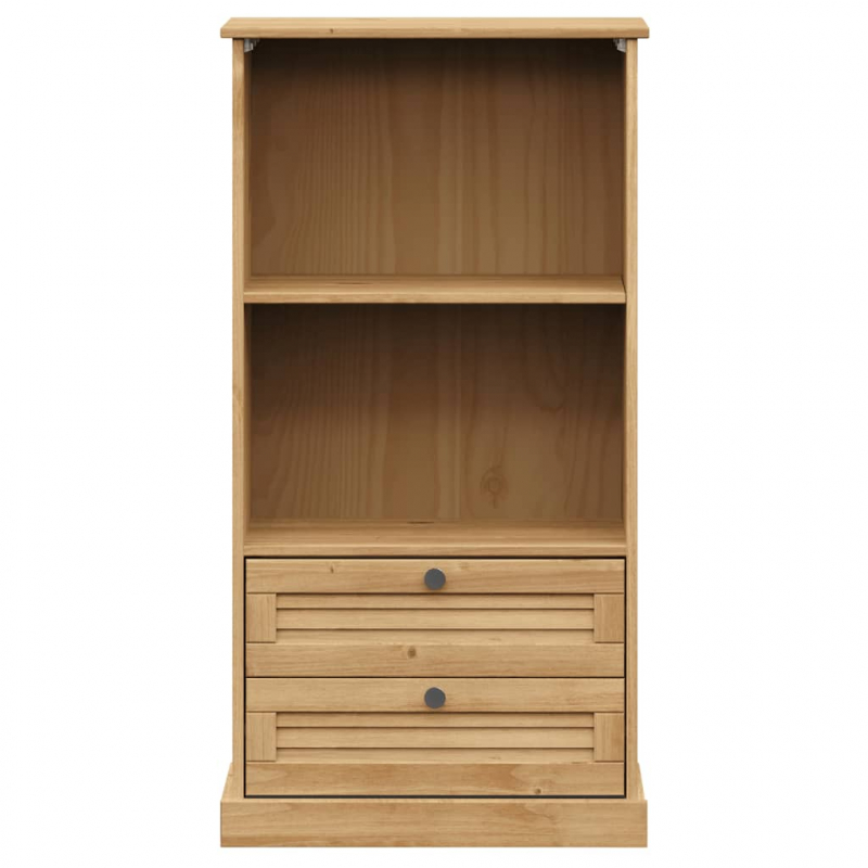Dieses Bücherregal aus Holz bietet eine ideale Lösung für die ordentliche Aufbewahrung deiner Bücher und verleiht deiner Einrichtung einen Hauch von rustikalem Charme. Kiefern-Massivholz: Massives Kiefernholz ist ein wunderschönes Naturmaterial. Kiefernholz hat eine gerade Maserung und die Aststellen verleihen dem Material sein typisches, rustikales Aussehen. Aus Kiefer-Massivholz gefertigt, ist das Bücherregal langlebig und robust.Viel Stauraum: Dieser Bücherschrank verfügt über 2 Fächer und 2 Schubladen und bietet reichlich Platz, um deine Büchersammlung, Zeitschriften und Unterlagen ordentlich aufzubewahren.Pflegeleicht: Das Bücherregal lässt sich leicht mit einem feuchten Tuch reinigen und braucht nur wenig Pflege.Metall-Knöpfe: Der Aufbewahrungsschrank ist mit Metallknöpfen ausgestattet, die das Öffnen und Schließen der Türen erleichtern. Achtung:Um ein Umkippen zu vermeiden, sollte dieses Produkt mit der mitgelieferten Wandhalterung gesichert werden.