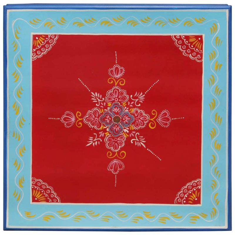 Dieser Couchtisch aus Holz mit reichen handgemalten Verzierungen ist ein echter Blickfang für dein Wohnzimmer. Mango-Massivholz: Massives Mangoholz ist ein robustes, tropisches Hartholz, aus dem sich robuste Möbel herstellen lassen. Seine optisch ansprechende Holzmaserung macht jedes Möbelstück zu einem Unikat. Aus massivem Mangoholz gefertigt, ist der Sofatisch robust und langlebig..Handbemaltes Design: Der Beistelltisch verfügt über umfangreiche handgemalte dekorative Details, die deinem Raum etwas Wärme und Eleganz verleihen.Robuste Tischplatte: Die robuste Tischplatte bietet den perfekten Platz für Getränke, Snacks und einige Dekoartikel.