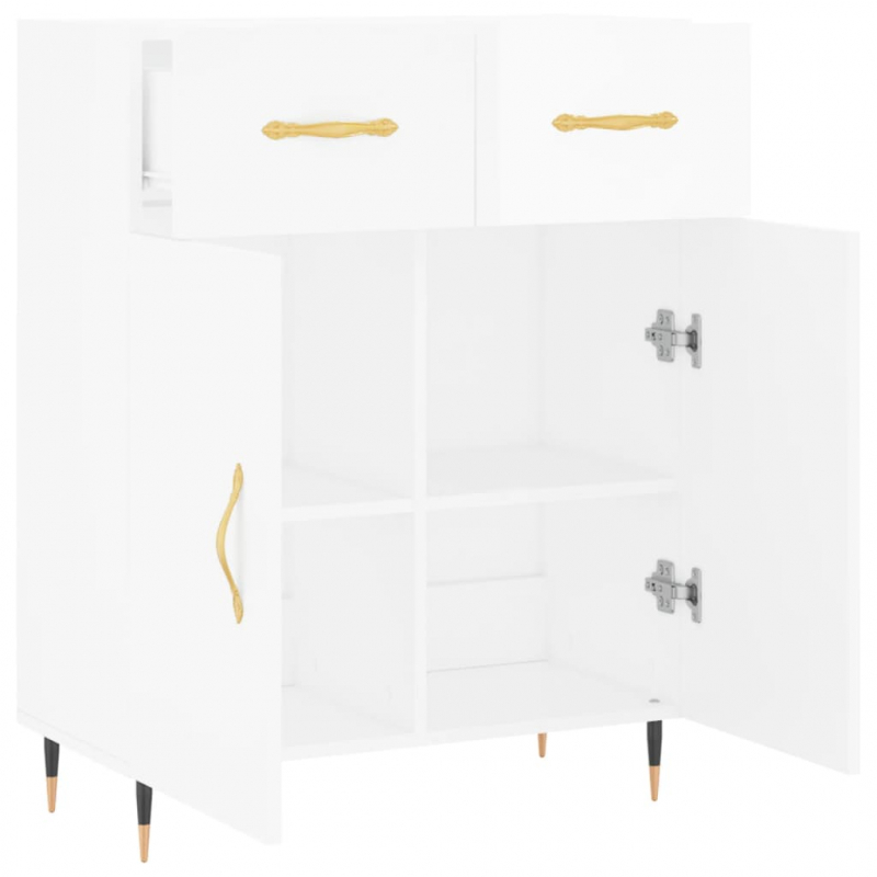 Dieses moderne Sideboard im zeitlosen Look ist eine hervorragende Ergänzung für dein Zuhause. Langlebiges Material: Holzwerkstoff ist ein Material von außergewöhnlicher Qualität mit glatter Oberfläche, das sich durch Festigkeit, Stabilität und Feuchtigkeitsbeständigkeit auszeichnet. Metallbeine: Die Metallbeine verleihen Ihrem Interieur eine moderne und angenehme Note und sorgen gleichzeitig für Stabilität. Viel Stauraum: Das Sideboard bietet viel Platz, um verschiedene Alltagssachen gut organisiert und in Reichweite aufzubewahren.Stabile und robuste Platte: Die Oberplatte dieses Schranks eignet sich perfekt zum Präsentieren von Dekorationsgegenständen, Bilderrahmen und Topfpflanzen. Praktische Türen: Halte deine wichtigsten Sachen staubfrei, indem du sie hinter den Türen verstaust. Darüber hinaus erleichtern die Griffe an den Türen und Schubladen das Öffnen. Achtung:Um ein Umkippen zu vermeiden, sollte dieses Produkt mit der mitgelieferten Wandhalterung gesichert werden.