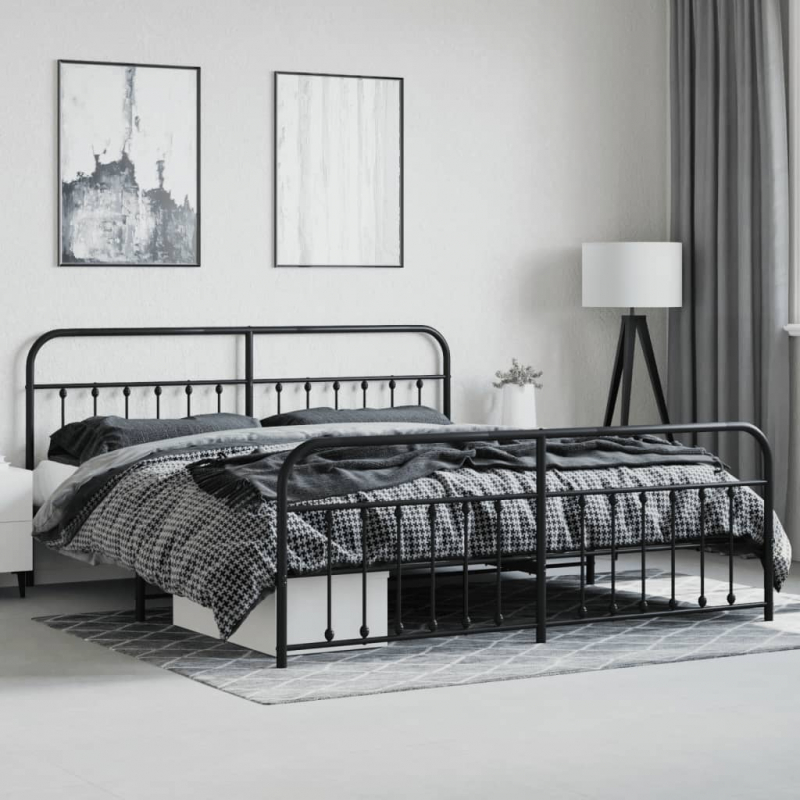 Bettgestell mit Kopf- und Fußteil Metall Schwarz 200x200 cm