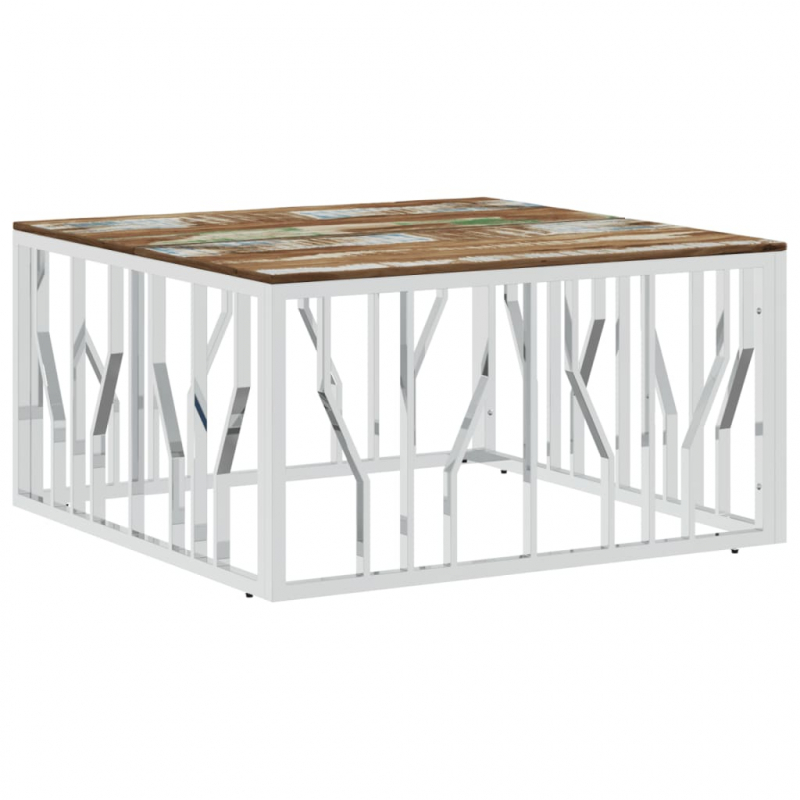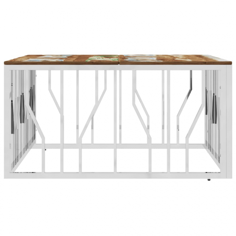Couchtisch Silbern Edelstahl und Altholz Massiv