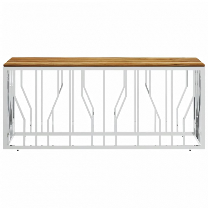 Couchtisch Silbern Edelstahl und Massivholz Akazie