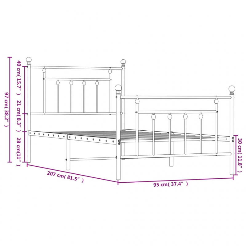 Bettgestell mit Kopf- und Fußteil Metall Schwarz 90x200 cm
