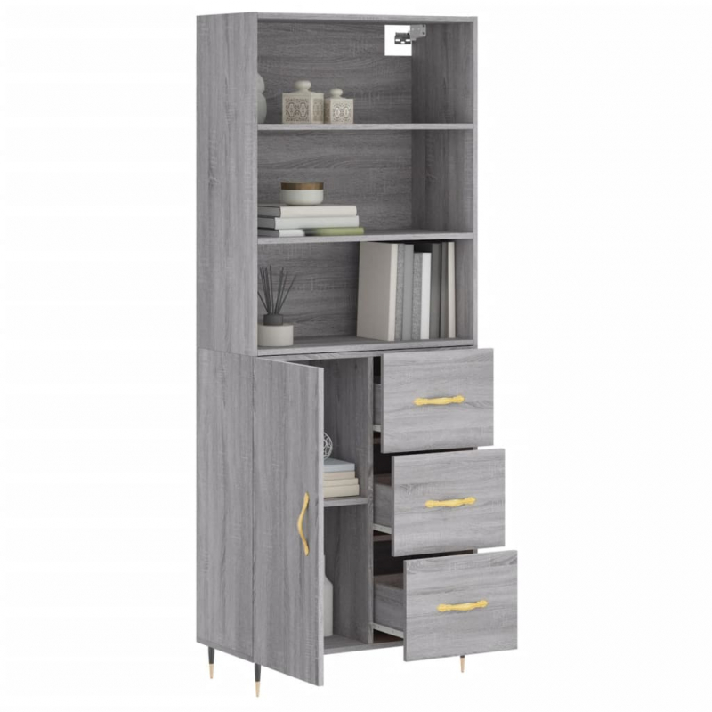 Highboard Grau Sonoma 69,5x34x180 cm Holzwerkstoff