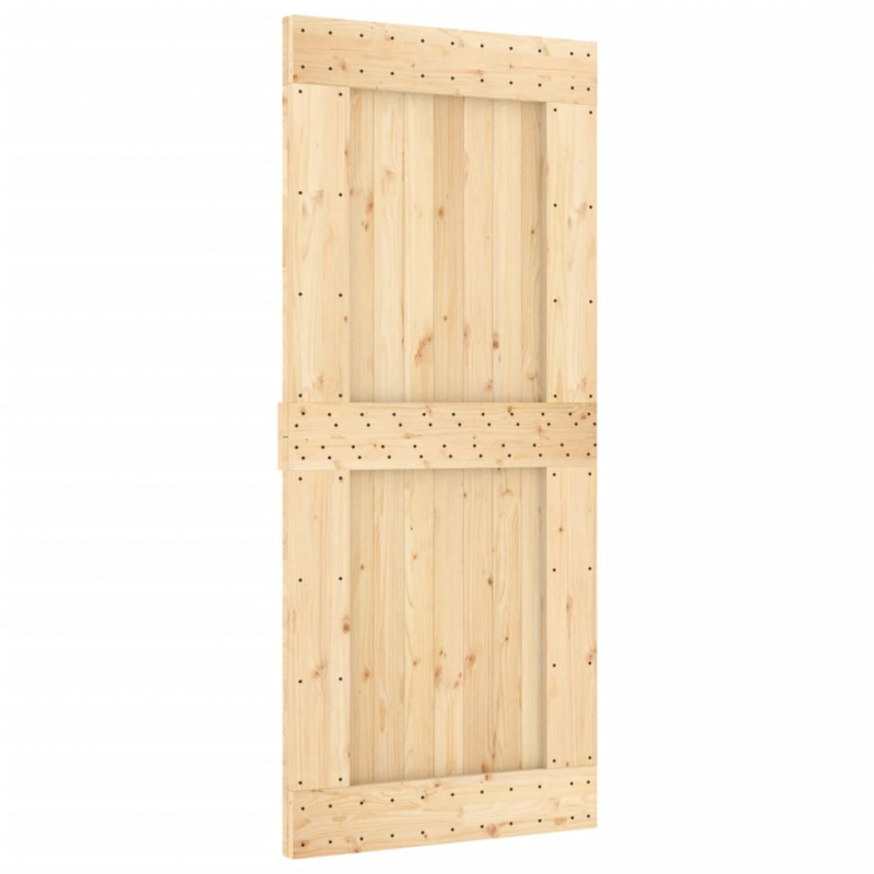 Diese Schiebetür aus massivem Kiefernholz wird den Eingangsbereich Ihres Zuhauses bereichern und ihm gleichzeitig eine bessere Sicherheit gewährleisten. Massives Kiefernholz: Die Innentür ist aus massivem Kiefernholz gefertigt. Massives Kiefernholz ist ein wunderschönes Naturmaterial. Kiefernholz weist eine gerade Maserung auf und die Aststellen verleihen dem Material seine charakteristische, rustikale Optik.Stabile Gleitschienen: Stahl ist ein außergewöhnlich hartes und starkes Material. Es bietet Robustheit und Stabilität. Die Pulverbeschichtung bildet auf dem Stahl eine Schutzschicht gegen Abnutzung und Verschleiß. Die aus pulverbeschichtetem Stahl gefertigten Gleitschienen sind robust, langlebig und strapazierfähig.Leises und sanftes Gleiten: Dank der Innenlager gleitet diese Schiebetür sanft und leise. Die mitgelieferten Türstopper verhindern das Entgleisen der Rollen, während die Gummidichtungen die Stöße der Rollen abfedern und die Geräusche reduzieren.Platzsparendes Design: Diese Holzschiebetür spart Platz und damit sieht jedes Zimmer geräumiger aus. Diese Schiebetür ist die erste Wahl für eine schlichte und stimmungsvolle Inneneinrichtung im modernen Stil.Vielseitig einsetzbar: Die Scheunentür kann sowohl an Holzwänden als auch an Betonwänden angebracht werden. Sie eignet sich ideal für Schlafzimmer, Küchen, Scheunen, Garagen usw.