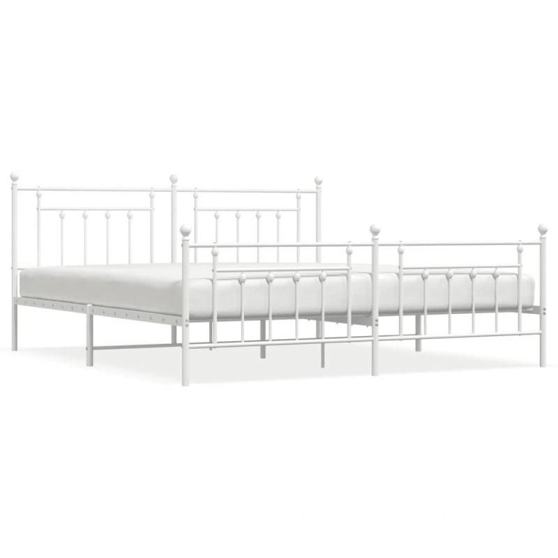 Bettgestell mit Kopf- und Fußteil Metall Weiß 200x200 cm