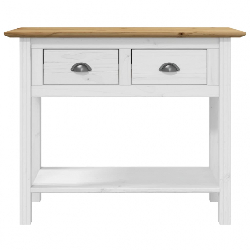 Dieser klassische Konsolentisch ist eine praktische und dekorative Ergänzung zu deiner Wohnungseinrichtung. Massives Kiefernholz: Massives Kiefernholz ist ein schönes Naturmaterial. Kiefernholz weist eine gerade Maserung auf und die Aststellen verleihen dem Material seine charakteristische, rustikale Optik. Aus massivem Kiefernholz gefertigt, ist der Sofatisch robust und stabil.Reichlich Stauraum: Dieser praktische Dielentisch verfügt über 2 Schubladen und eine untere Ablage, die reichlich Platz für deine Bücher, Pflanzen, Aufbewahrungsboxen, Dekorationen usw. bieten.Präsentation: Du kannst auch deine Lieblingsfotos, Dekoartikel oder Blumen auf dem Beistelltisch zur Schau stellen, um deinen Wohnraum schöner zu gestalten.Metallgriffe: Die Metallgriffe erleichtern das Öffnen und Schließen der Schubladen und tragen zur ansprechenden Optik des Flurtisches bei.Charmanter französischer Stil: Verleihe deiner Inneneinrichtung eine inspirierende französische Note! Achtung:Um ein Umkippen zu vermeiden, sollte dieses Produkt mit der mitgelieferten Wandhalterung gesichert werden.