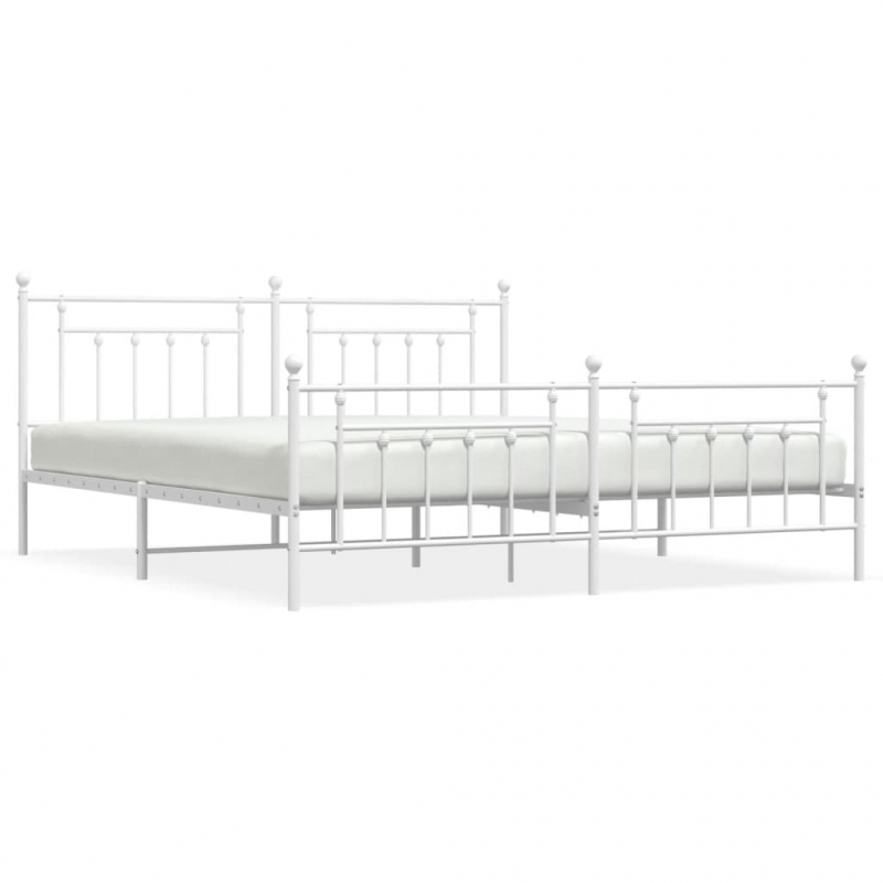 Bettgestell mit Kopf- und Fußteil Metall Weiß 193x203 cm