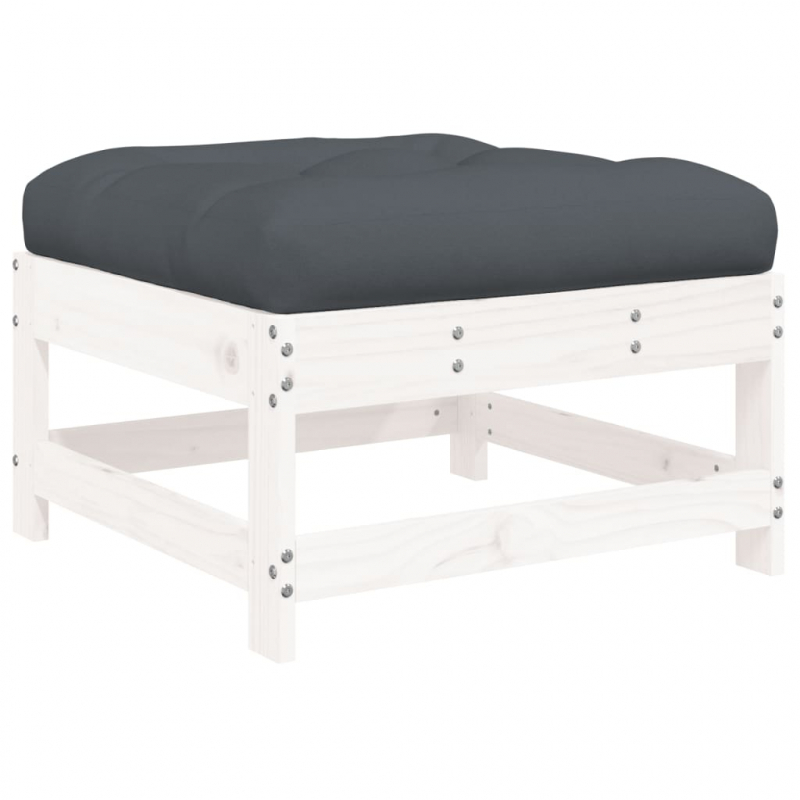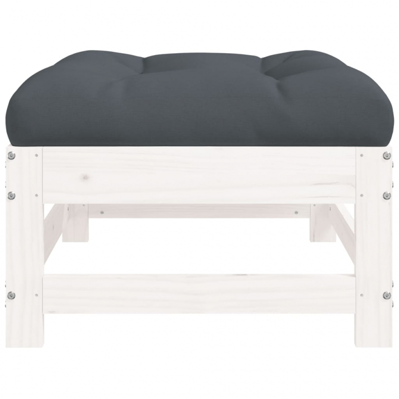 Gartenhocker mit Kissen Weiß Massivholz Kiefer