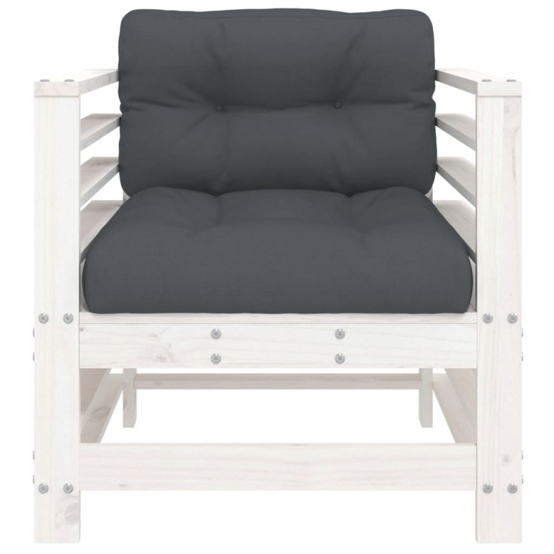 Gartenstühle mit Kissen 2 Stk. Weiß Massivholz Kiefer