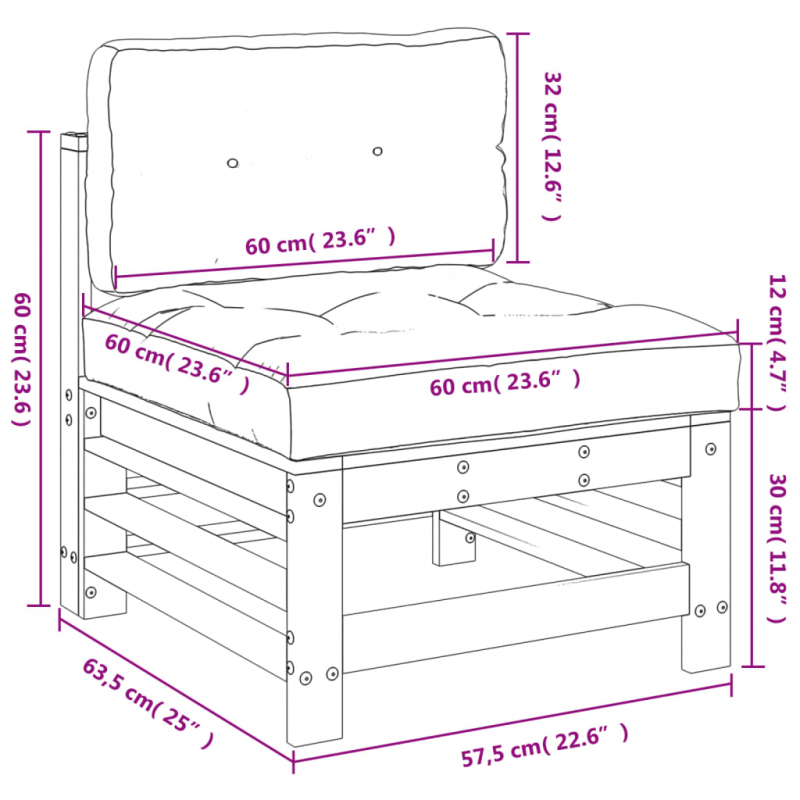 Dieses Mittelsofa aus Holz, das sich durch sein Latten-Design und weiche Kissen auszeichnet, ist eine tolle Ergänzung zu deinem Garten, Innenhof oder deiner Terrasse, um gemütliche Stunden mit deiner Familie oder deinen Freunden zu verbringen. Massives Kiefernholz: Massives Kiefernholz ist ein wunderschönes Naturmaterial. Kiefernholz weist eine gerade Maserung auf und die Aststellen verleihen dem Material seine charakteristische, rustikale Optik.Robuster und stabiler Rahmen: Dank des Holzrahmens ist das Gartensofa robust, stabil und für den täglichen Einsatz im Außenbereich geeignet.Bequemes Sitzerlebnis: Die Rückenlehne sorgt für zusätzlichen Sitzkomfort auf dem Outdoor-Sofa. Zum hohen Sitzkomfort trägt auch das dick gepolsterte Kissen bei.Modulares Design: Das modulare Sofa lässt sich flexibel und einfach umstellen. Du kannst es mit anderen modularen Elementen aus unserem Webshop kombinieren, um dein ganz persönliches Garten-Lounge-Set zusammenzustellen! Gut zu wissen:Damit deine Gartenmöbel lange schön bleiben, empfehlen wir dir, sie mit einer wasserdichten Hülle zu schützen.