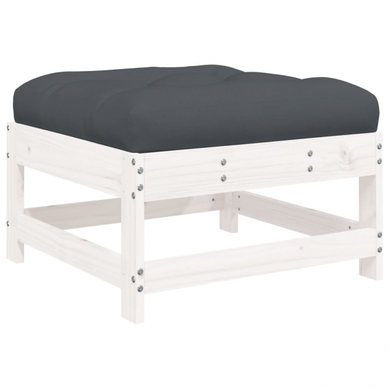 Gartenhocker mit Kissen 2 Stk. Weiß Massivholz Kiefer