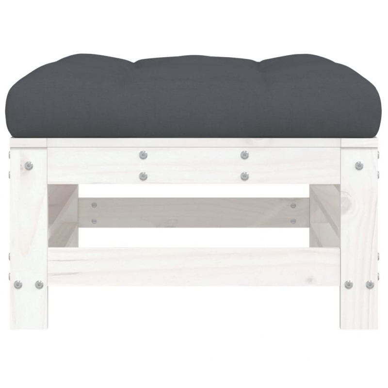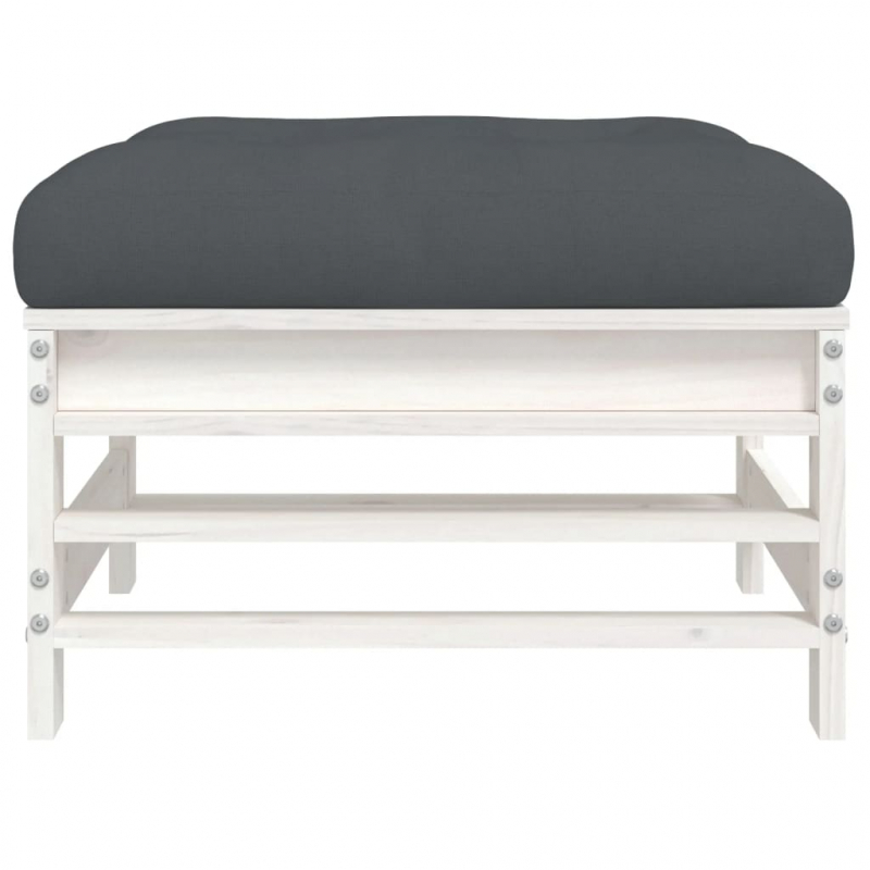 Gartenhocker mit Kissen Weiß Massivholz Kiefer