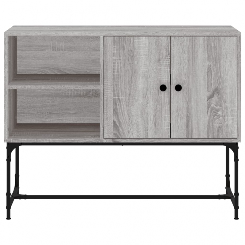 Mit seinem zeitlosen Design ist dieses Sideboard im Industrie-Stil eine hervorragende Ergänzung zu deinem Zuhause. Langlebiges Material: Holzwerkstoff ist ein Material von außergewöhnlicher Qualität mit glatter Oberfläche, das sich durch Festigkeit, Stabilität und Feuchtigkeitsbeständigkeit auszeichnet.Reichlich Stauraum: Mit seinen 4 Fächern bietet der Beistellschrank reichlich Stauraum, um verschiedene Alltagssachen gut organisiert und griffbereit aufzubewahren.Stabile und robuste Oberplatte: Die Oberplatte eignet sich perfekt, um deine Dekoartikel, Bilderrahmen und Topfpflanzen zur Schau zu stellen.Praktische Türen: Hinter den Türen kannst du deine wichtigsten Sachen staubfrei aufbewahren. Darüber hinaus erleichtern die Griffe an den Türen das Öffnen des Sideboards.Metallbeine: Die Metallbeine verleihen Ihrem Interieur eine moderne und angenehme Note und sorgen gleichzeitig für Stabilität. Achtung:Um ein Umkippen zu vermeiden, sollte dieses Produkt mit der mitgelieferten Wandhalterung gesichert werden.
