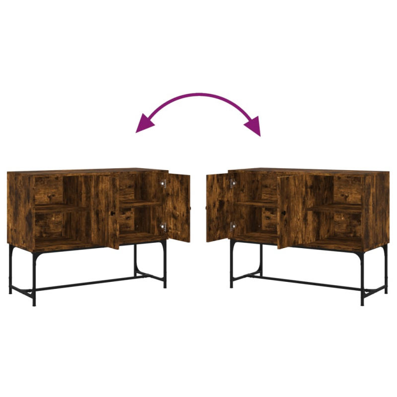 Mit seinem zeitlosen Design ist dieses Sideboard im Industrie-Stil eine hervorragende Ergänzung zu deinem Zuhause. Langlebiges Material: Holzwerkstoff ist ein Material von außergewöhnlicher Qualität mit glatter Oberfläche, das sich durch Festigkeit, Stabilität und Feuchtigkeitsbeständigkeit auszeichnet.Reichlich Stauraum: Mit seinen 4 Fächern bietet der Beistellschrank reichlich Stauraum, um verschiedene Alltagssachen gut organisiert und griffbereit aufzubewahren.Stabile und robuste Oberplatte: Die Oberplatte eignet sich perfekt, um deine Dekoartikel, Bilderrahmen und Topfpflanzen zur Schau zu stellen.Praktische Türen: Hinter den Türen kannst du deine wichtigsten Sachen staubfrei aufbewahren. Darüber hinaus erleichtern die Griffe an den Türen das Öffnen des Sideboards.Metallbeine: Die Metallbeine verleihen Ihrem Interieur eine moderne und angenehme Note und sorgen gleichzeitig für Stabilität. Achtung:Um ein Umkippen zu vermeiden, sollte dieses Produkt mit der mitgelieferten Wandhalterung gesichert werden.