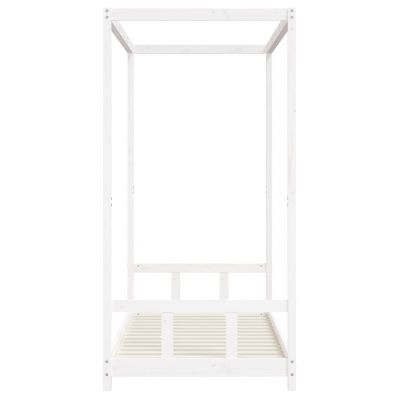 Mit diesem fantastischen Kinderbett aus Holz bietest du deinen Kleinen einen eigenen lustigen Platz! Massives Kiefernholz: Das Kinderbett ist aus massivem Kiefernholz gefertigt. Massives Kiefernholz ist ein wunderschönes Naturmaterial. Kiefernholz weist eine gerade Maserung auf und die Aststellen verleihen dem Material seine charakteristische, rustikale Optik.Robuste Latten: Das Kinderbett ist mit Holzlatten versehen, die für einen festen Halt, Belüftung und Stabilität sorgen.Himmelbett: Dieses Kleinkinderbett ist mit einem Baldachin-Bettgestell ausgestattet, an dem du Bettvorhänge aufhängen kannst, um Privatsphäre für dein Kind zu schaffen.Durchdachtes Design: Dank der geringen Höhe des Einzelbettes können Kinder leicht ins Bett ein- und aussteigen.