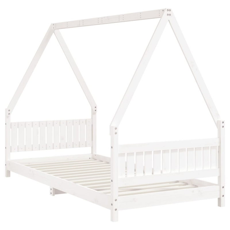 Mit diesem fantastischen Kinderbett aus Holz bietest du deinen Kleinen einen eigenen lustigen Platz! Massives Kiefernholz: Das Kinderbett ist aus massivem Kiefernholz gefertigt. Massives Kiefernholz ist ein wunderschönes Naturmaterial. Kiefernholz weist eine gerade Maserung auf und die Aststellen verleihen dem Material seine charakteristische, rustikale Optik.Robuste Latten: Das Kinderbett ist mit Holzlatten versehen, die für einen festen Halt, Belüftung und Stabilität sorgen.Design in Hausform: Dieses Kleinkinderbett weist ein durchdachtes Design mit einem Rahmen in Hausform auf, an dem du Bettvorhänge aufhängen kannst, um Privatsphäre für dein Kind zu schaffen.Durchdachtes Design: Dank der geringen Höhe des Einzelbettes können Kinder leicht ins Bett ein- und aussteigen.