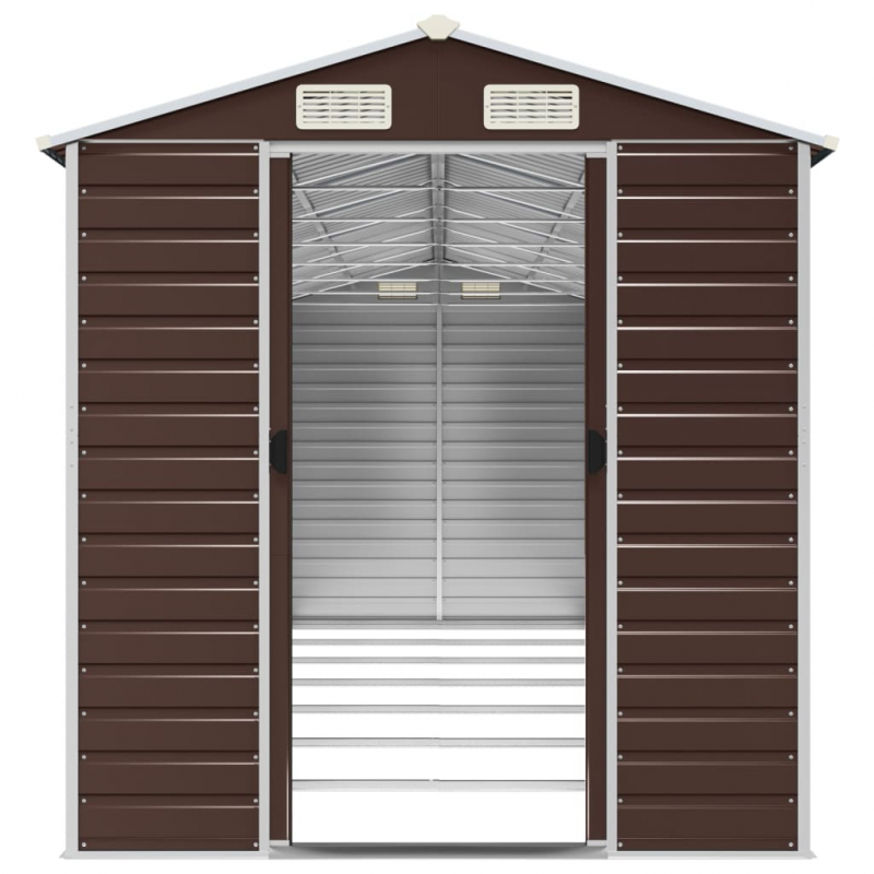 Schaffe zusätzlichen Stauraum im Freien und schütze deine Werkzeuge mit diesem multifunktionalen Gartenhaus. Robustes Material: Der Geräteschuppen besteht aus verzinktem Stahl, der rostfrei und auf eine lange Lebensdauer ausgelegt ist. Stahl ist ein außergewöhnlich hartes und starkes Material. Er bietet Robustheit und Stabilität. Die Verzinkung bietet einen besseren Schutz gegen Korrosion und eignet sich für Produkte, die im Freien und in rauen Umgebungen eingesetzt werden.Reichlich Stauraum: Dieser Metallschuppen bietet reichlich Platz, um Brennholz, Gartengeräte, Möbel, Ausrüstung und vieles mehr zu lagern.Bequeme Griffe: Die Tür des Gerätehauses ist mit Griffen versehen, die den Zugang erleichtern.Gute Belüftung: Das Gartenhaus ist mit 4 Lüftungsöffnungen ausgestattet, die für eine gute Belüftung sorgen, um die Ansammlung von Feuchtigkeit und unangenehme Gerüche im Haus zu verhindern.Schrägdach: Das Schrägdach sorgt für einen ungehinderten Wasserabfluss.