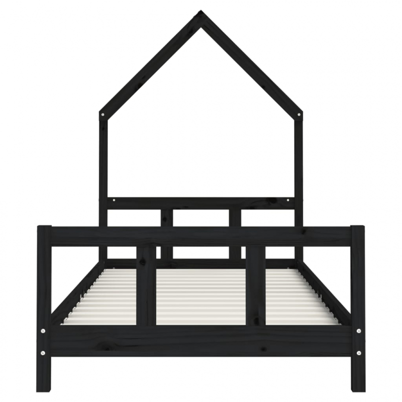 Kinderbett Schwarz 90x200 cm Massivholz Kiefer
