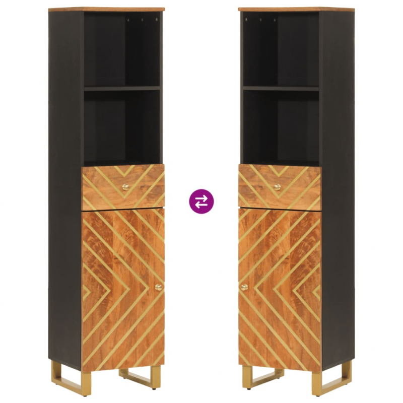 Dieser Badschrank ist eine ausgezeichnete Wahl, um für Ordnung in deinem Badezimmer zu sorgen! Mango-Massivholz: Massives Mangoholz ist ein robustes, tropisches Hartholz, aus dem sich robuste Möbel herstellen lassen. Die optisch ansprechende Holzmaserung macht jedes Möbelstück zu einem Unikat. Der Badschrank ist aus massivem Mangoholz gefertigt und daher langlebig und stabil.Reichlich Stauraum: Der Badezimmerschrank bietet reichlich Stauraum, um wichtige Sachen ordentlich und griffbereit aufzubewahren.Flexible Tür: Du kannst die Tür je nach Bedarf auf der linken oder rechten Seite montieren.Starke Beine: Die Eisenbeine verleihen dem Badschrank zusätzliche Robustheit und Stabilität. Achtung:Um ein Umkippen zu vermeiden, sollte dieses Produkt mit der mitgelieferten Wandhalterung gesichert werden.