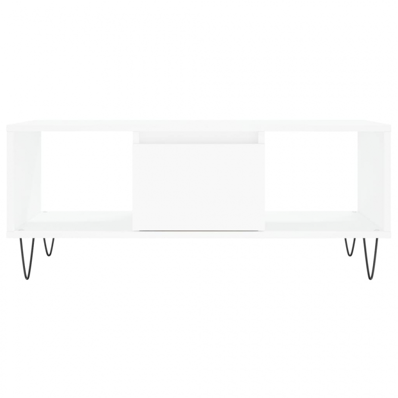 Bringe einen Hauch Eleganz in dein Wohnzimmer mit diesem stilvollen Couchtisch. Langlebiges Material: Holzwerkstoff ist ein Material von außergewöhnlicher Qualität mit glatter Oberfläche, das sich durch Festigkeit, Stabilität und Feuchtigkeitsbeständigkeit auszeichnet. Aus Holzwerkstoff gefertigt, lässt sich der Beistelltisch mit einem feuchten Tuch leicht reinigen.Reichlich Stauraum: Dieser Sofatisch bietet mit einer Schublade und 2 Fächern reichlich Stauraum, um verschiedene wichtige Sachen ordentlich und griffbereit aufzubewahren.Robuste Tischplatte: Die robuste Tischplatte bietet den perfekten Platz für Getränke, Snacks und einige Dekoartikel.Metallbeine: Die Metallbeine verleihen Ihrem Interieur eine moderne und angenehme Note und sorgen gleichzeitig für Stabilität.