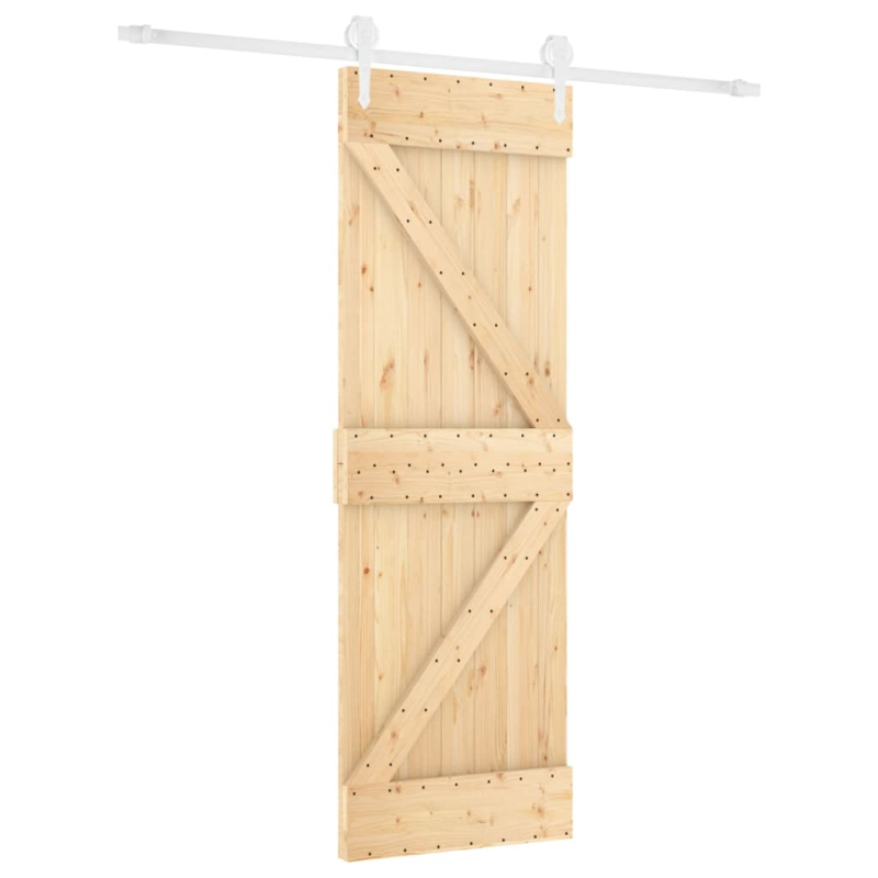 Diese Schiebetür aus massivem Kiefernholz wird den Eingangsbereich Ihres Zuhauses bereichern und ihm gleichzeitig eine bessere Sicherheit gewährleisten. Massives Kiefernholz: Die Innentür ist aus massivem Kiefernholz gefertigt. Massives Kiefernholz ist ein wunderschönes Naturmaterial. Kiefernholz weist eine gerade Maserung auf und die Aststellen verleihen dem Material seine charakteristische, rustikale Optik.Stabile Gleitschienen: Stahl ist ein außergewöhnlich hartes und starkes Material. Es bietet Robustheit und Stabilität. Die Pulverbeschichtung bildet auf dem Stahl eine Schutzschicht gegen Abnutzung und Verschleiß. Die aus pulverbeschichtetem Stahl gefertigten Gleitschienen sind robust, langlebig und strapazierfähig.Leises und sanftes Gleiten: Dank der Innenlager gleitet diese Schiebetür sanft und leise. Die mitgelieferten Türstopper verhindern das Entgleisen der Rollen, während die Gummidichtungen die Stöße der Rollen abfedern und die Geräusche reduzieren.Platzsparendes Design: Diese Holzschiebetür spart Platz und damit sieht jedes Zimmer geräumiger aus. Diese Schiebetür ist die erste Wahl für eine schlichte und stimmungsvolle Inneneinrichtung im modernen Stil.Vielseitig einsetzbar: Die Scheunentür kann sowohl an Holzwänden als auch an Betonwänden angebracht werden. Sie eignet sich ideal für Schlafzimmer, Küchen, Scheunen, Garagen usw.