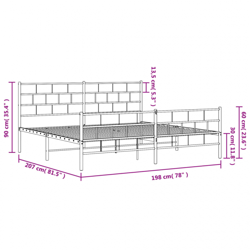 Bettgestell mit Kopf- und Fußteil Metall Schwarz 193x203 cm