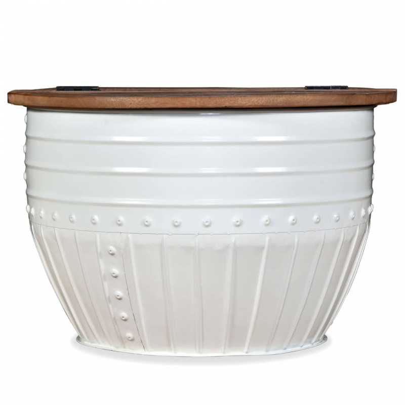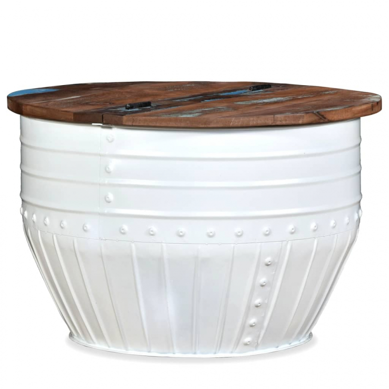 Mit seinem einzigartigen Design im Industrie-Stil ist dieser Couchtisch aus Holz eine zeitlose Ergänzung zu deinem Zuhause. Der einzigartige Standfuß in Trommelform verleiht dem Tisch eine industrielle Note. Der Couchtisch verfügt über eine Tischplatte aus Massivholz, die den idealen Platz für Gläser, Vasen, Obstkörbe oder Dekoartikel bietet, während das Fach unter der Tischplatte zusätzlichen Stauraum schafft, um für mehr Ordnung in deinem Zuhause zu sorgen. Die Tischplatte besteht aus recyceltem Massivholz, was jeden Tisch zu einem Unikat macht. Altholz weist die Eigenschaften verschiedener Holzarten wie Teak-, Akazien- oder Mangoholz auf. Daher ist recyceltes Holz robust, stabil, langlebig und optisch ansprechend. Jeder Herstellungsschritt wurde mit größter Sorgfalt ausgeführt, sei es Polieren, Anstreichen oder Lackieren. Entspanne dich also und genieße deine Freizeit mit Familie und Freunden an diesem einzigartigen Couchtisch! Hinweis: Der Artikel ist bereits zusammengebaut; keine Montage erforderlich. Die Farben der Tischplatten können von Möbelstück zu Möbelstück variieren, was jeden dieser Couchtische zu einem Unikat macht. Die Lieferung erfolgt in zufälliger Reihenfolge, was die Exklusivität und Individualität deines Produkts gewährleistet.
