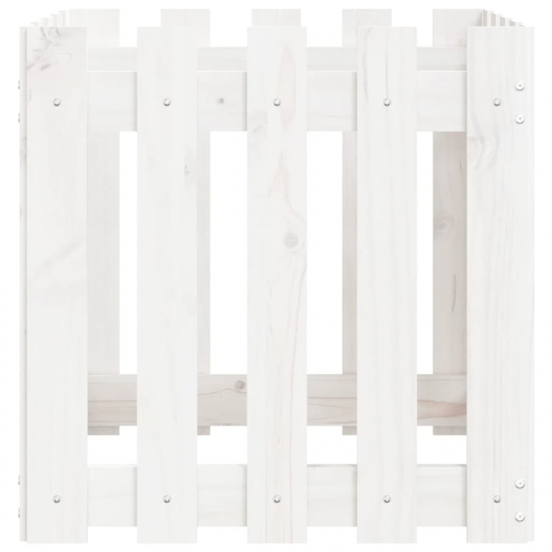 Pflanzkübel Lattenzaun-Design Weiß 50x50x50cm Massivholz Kiefer