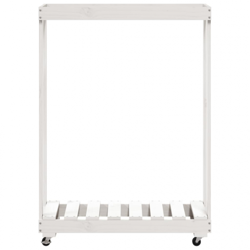Dieses Kaminholzhalter aus Holz bietet die ideale Lösung für die ordentliche Lagerung deines Brennholzes. Massives Kiefernholz: Massives Kiefernholz ist ein wunderschönes Naturmaterial. Kiefernholz weist eine gerade Maserung auf und die Aststellen verleihen dem Material seine charakteristische, rustikale Optik.Viel Stauraum: Das Kaminholzregal bietet reichlich Platz zur ordentlichen Lagerung deines Brennholzes.Trockenes Brennholz: Das Kaminholzregal hält die Scheite vom Boden fern und ermöglicht so eine bessere Luftzirkulation, um das Brennholz vor Verrottung zu schützen und es trocken zu halten.Einfacher Transport: Dieses Brennholzregal lässt sich dank der leichtgängigen Rollen mühelos umher verschieben.