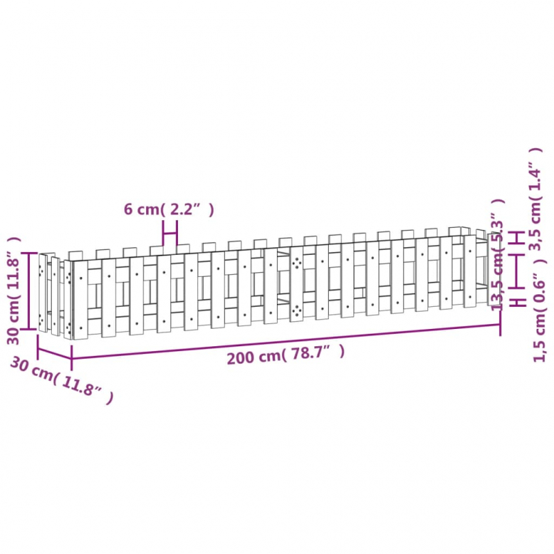 Hochbeet Latten-Design Schwarz 200x30x30 cm Massivholz Kiefer