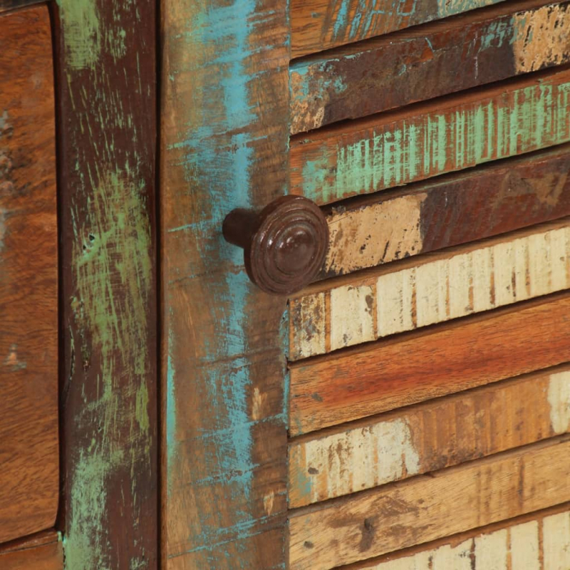 Mit seinem zeitlosen Look ist dieses Sideboard aus Holz eine hervorragende Ergänzung zu deinem Zuhause. Massives Altholz: Recyceltes Massivholz besteht aus wiederverwendeten Holzarten wie Teak, Mango, Kiefer und Buche. Dieses Holz wird aus alten Gebäuden wie Fabriken, Schuppen und Booten recycelt. Da jedes Stück handgefertigt ist, variieren die Farben bei jedem Produkt. Aus massivem Altholz gefertigt, ist der Schrank auf eine lange Lebensdauer ausgelegt und weist eine ansprechende Optik auf.Reichlich Stauraum: Mit 3 Schubladen und 2 Fächern versehen, bietet das Sideboard reichlich Stauraum, um unterschiedliche Alltagssachen gut organisiert und in Reichweite aufzubewahren.Präsentation: Die Oberplatte eignet sich ideal, um Dekoartikel, Fotoalben oder kleine Pflanzen zur Schau zu stellen. Gut zu wissen: Farben und Maserungen variieren von Möbelstück zu Möbelstück und machen jedes Stück zu einem Unikat. Die Lieferung erfolgt nach dem Zufallsprinzip, wodurch die Exklusivität und Individualität deines Möbels gewährleistet ist. Achtung:Um ein Umkippen zu vermeiden, sollte dieses Produkt mit der mitgelieferten Wandhalterung gesichert werden.