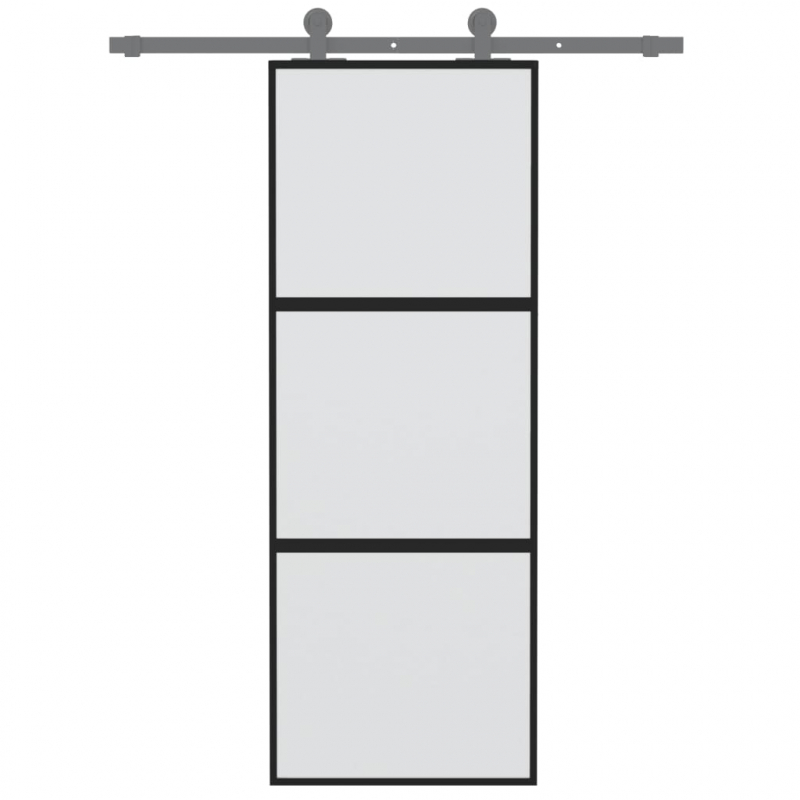 Schiebetür Schwarz 76x205 cm Hartglas und Aluminium