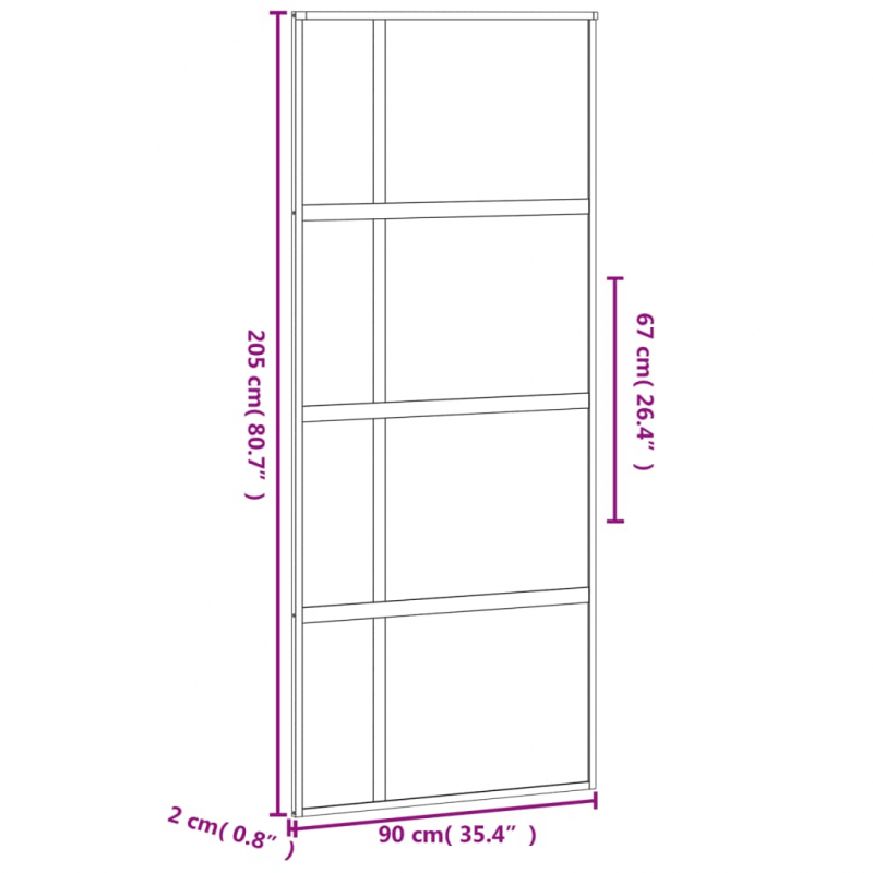Schaffe einen stilvollen Übergang von einem Raum zum anderen mit dieser Schiebetür! Starkes Material: Dank der intelligenten Struktur ist gehärtetes Glas stärker und langlebiger als jedes andere Glas. Hartglas ist dafür bekannt, Einwirkungen wie starken Stößen, Kratzern, Schlägen usw. standzuhalten.Robuster Metallrahmen: Der Aluminiumrahmen verleiht der Schiebetür Langlebigkeit und Stabilität.Sicher und geräuschlos: Dank des Türstoppers und des Türdämpfers lässt sich die Innenschiebetür geräuschlos öffnen und schließen.Praktisches Design: Das Türblatt besteht aus mattem und transparentem Glas, das sowohl Licht durchlässt, als auch Privatsphäre schafft.Schlankes Design: Der schlanke Rahmen verleiht der Schiebetür aus Glas eine moderne und minimalistische Optik. Gut zu wissen:Die Tür kann nur in Kombination mit Schiebetür-Beschlagsätzen montiert werden. Die passenden Schiebetürbeschlagsätze finden Sie in unserem Shop.Für die Installation können Sie unsere Installationsanleitung für die Tür- und Schiebebeschlagsätze einsehen.