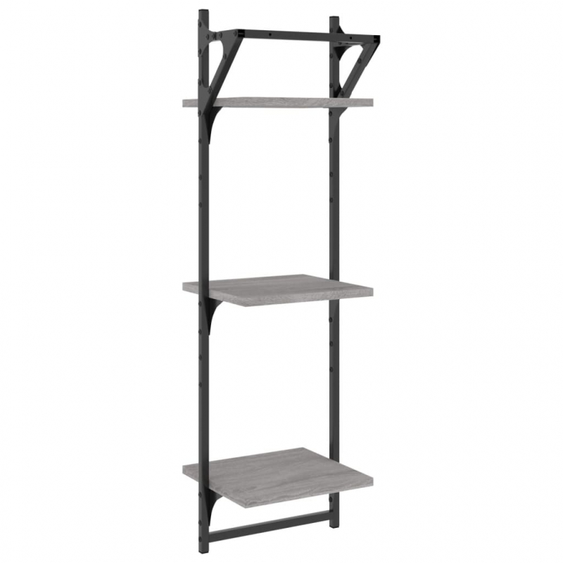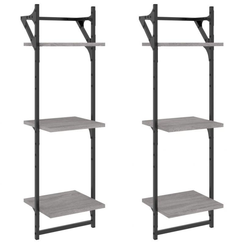 Wandregale mit 3 Ablagen & Stangen 2 Stk. Grau Sonoma