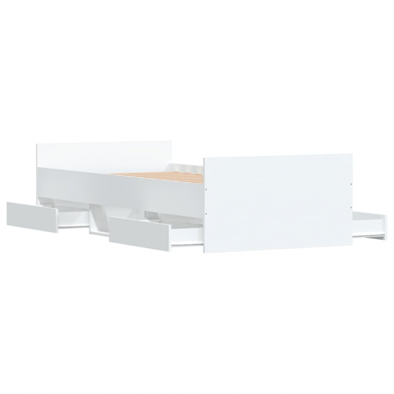 Mit diesem Bett wirst du einen besseren, erholsameren Schlaf genießen! Er ist eine einladende Ergänzung für jedes Schlafzimmer. Langlebiges Material: Holzwerkstoff ist ein Material von außergewöhnlicher Qualität mit glatter Oberfläche, das sich durch Festigkeit, Stabilität und Feuchtigkeitsbeständigkeit auszeichnet.Praktisches Kopf- und Fußteil: Das Kopf- und Fußteil des Bettgestells halten die Matratze an ihrem Platz. Das Kopfteil bietet zudem eine ausgezeichnete Rückenunterstützung beim Lesen oder Fernsehen.Reichlich Stauraum: Dieses Gästebett verfügt über vier Schubladen und Ablagen, die reichlich Stauraum für Kleidung, Socken, Spielzeug, Kissen usw. bieten.Robuste Latten: Die Sperrholzlatten sorgen für eine gute Gewichtsverteilung und auch dafür, dass die Matratze bei jeder Bewegung Ihres Körpers während des Schlafes an Ort und Stelle bleibt. Gut zu wissen:Bei diesem Bett ist keine Matratze im Lieferumfang enthalten. Wir bieten jedoch eine große Auswahl an Matratzen an. Du kannst in unserem Shop nach einer passenden Matratze suchen.