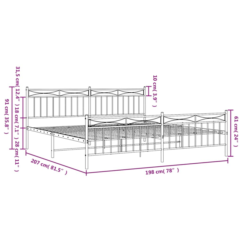 Bettgestell mit Kopf- und Fußteil Metall Schwarz 193x203 cm