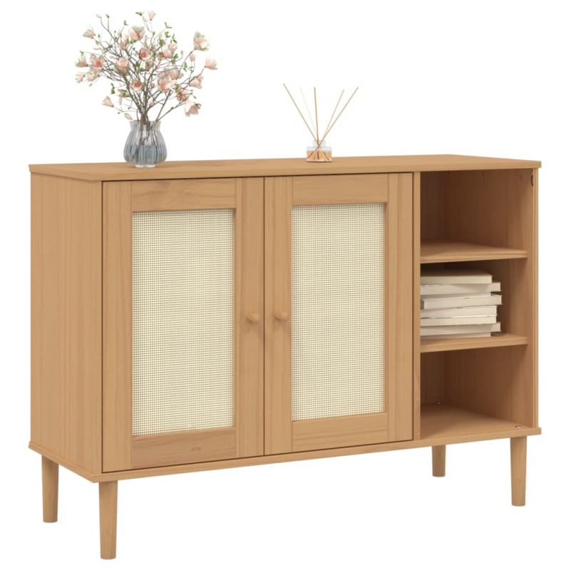 Sideboard SENJA Rattan-Optik Braun 112x40x80 cm Kiefernholz