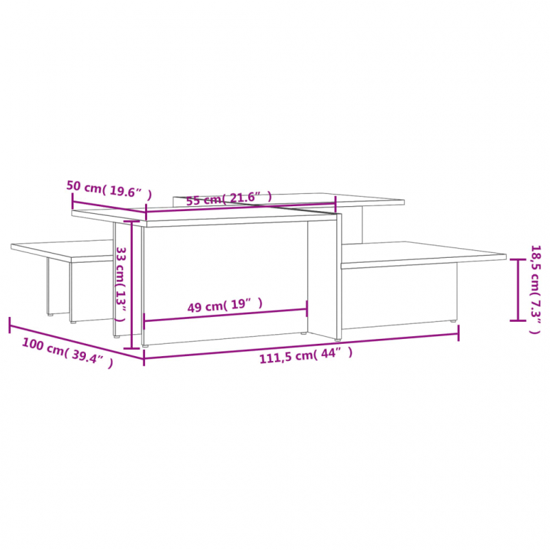 Bringe einen Hauch Eleganz in dein Zuhause mit diesen stilvollen Couchtischen. Langlebiges Material: Holzwerkstoff ist ein Material von außergewöhnlicher Qualität mit glatter Oberfläche, das sich durch Festigkeit, Stabilität und Feuchtigkeitsbeständigkeit auszeichnet. Aus Holzwerkstoff gefertigt, ist der Beistelltisch robust und stabil. Reichlich Platz: Die Tischplatten in zwei verschiedenen Höhen bieten reichlich Platz für Getränke, Speisen und andere Dekorationsartikel. Einfache Reinigung: Der Wohnzimmertisch lässt sich leicht mit einem feuchten Tuch reinigen.