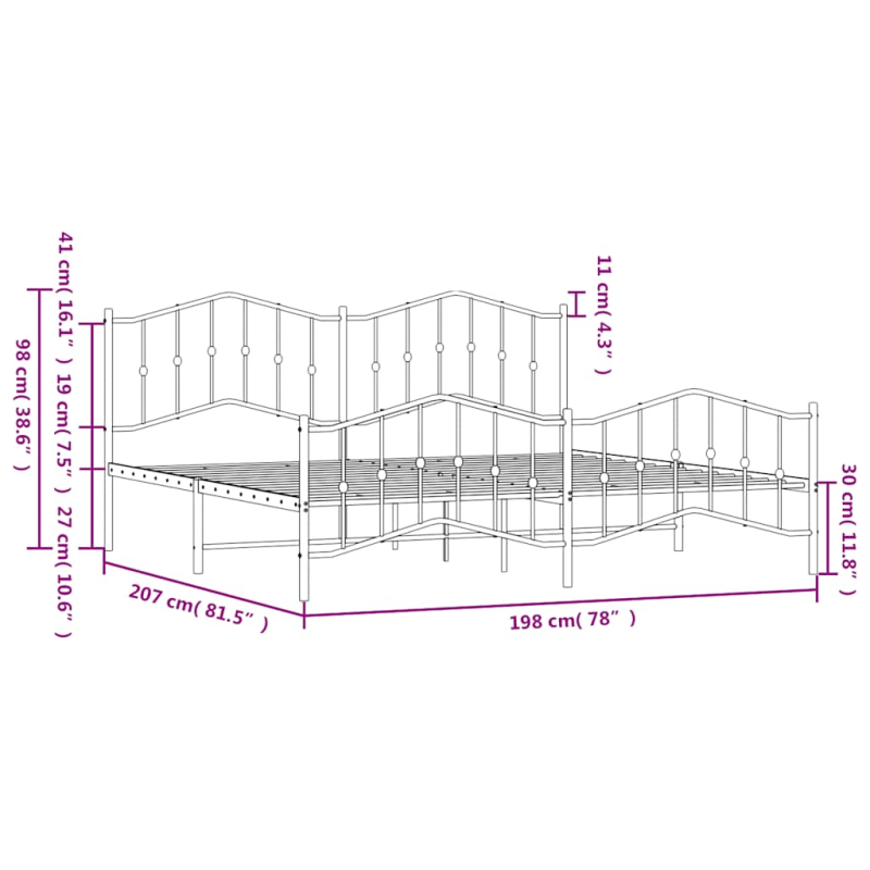 Bettgestell mit Kopf- und Fußteil Metall Schwarz 193x203 cm