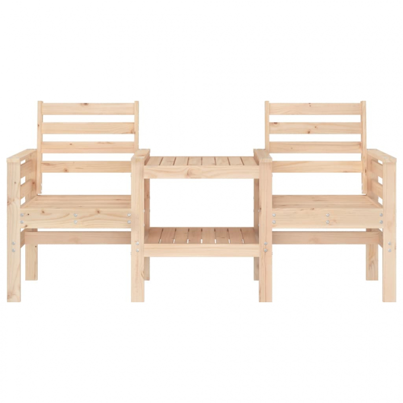 Genieße romantische Abende auf diesen Gartensesseln, die mit einem integrierten Tisch für Weingläser, Snacks oder Kaffee versehen sind. Massives Kiefernholz: Die Gartenbank mit Tisch ist aus massivem Kiefernholz gefertigt, was ihr Robustheit und Stabilität verleiht. Massives Kiefernholz ist ein wunderschönes Naturmaterial. Kiefernholz weist eine gerade Maserung auf und die Aststellen verleihen dem Material seine charakteristische, rustikale Optik.Bequemes Sitzerlebnis: Mit einem integrierten Tisch, Armlehnen und Rückenlehnen versehen, bietet diese Gartenbank höchsten Komfort.Praktischer integrierter Tisch: Der integrierte Tisch und die untere Ablage zwischen den beiden Sitzen bieten den idealen Platz für Getränke, Snacks, Zeitschriften und anderen Sachen, die du griffbereit haben möchtest.Latten-Design: Das Latten-Design verhindert die Ansammlung von Wasser auf der Outdoor-Bank, hält die Sitzfläche trocken und verhindert Verrottung. Gut zu wissen:Wir empfehlen dir, deine Gartenmöbel mit einer wasserdichten Hülle zu schützen, um lange Zeit eine ansprechende Optik aufzuweisen.