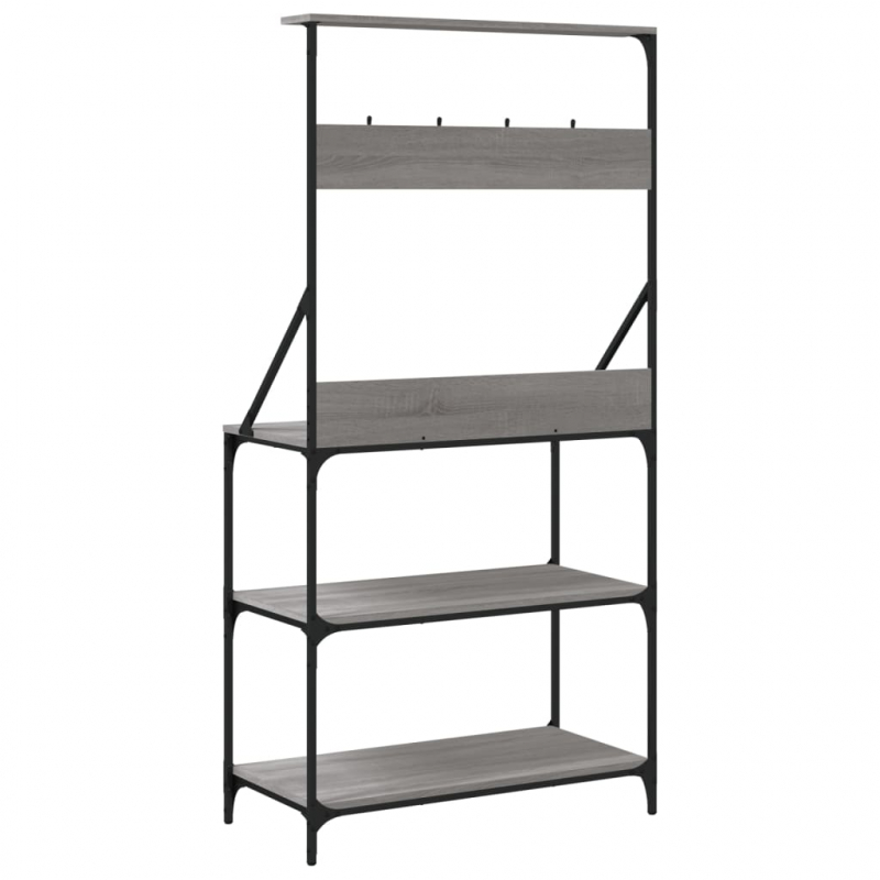 Schaffe Platz auf deiner Theke mit diesem Bäckerregal, das jede Menge Stauraum bietet. Langlebiges und robustes Material: Das Holzwerkstoff ist ein Material von außergewöhnlicher Qualität mit glatter Oberfläche, das sich durch Festigkeit, Stabilität und Feuchtigkeitsbeständigkeit auszeichnet. Der Metallrahmen des Küchenregals sorgt für Robustheit und Stabilität.Viel Stauraum: Mit 1 oberen Regal für Gewürzdosen und 3 großen unteren Regalen für Küchengeräte bietet das Küchenregal reichlich Stauraum, um deine Küche besser zu organisieren.Praktische Haken: Das Mikrowellenregal wird mit 4 Haken geliefert. So kannst du häufig benötigte Gegenstände und Backutensilien wie Teigschaber, Pinsel, Schneebesen und Co. ganz nach Bedarf frei aufhängen und immer griffbereit haben.Verstellbare Beine: Die verstellbaren Beine mit Kunststoffkappen gewährleisten die Stabilität des Küchenregals, selbst auf unebenem Untergrund. Achtung:Um ein Umkippen zu vermeiden, sollte dieses Produkt mit der mitgelieferten Wandhalterung gesichert werden. Gut zu wissen:Schrauben und Dübel sind für die Befestigung an der Wand nicht im Lieferumfang enthalten. Wir empfehlen, speziell für deine Wände geeignete Schrauben und Dübel zu finden und zu verwenden. Im Zweifelsfall wende dich an einen Fachmann. Bitte lese und befolge jeden Schritt der Anweisungen.