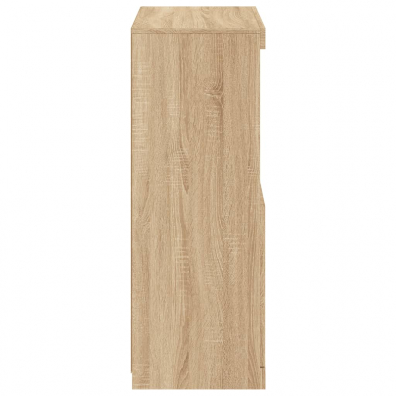 Dekoriere dein Zuhause mit diesem modernen Sideboard mit LED-Beleuchtung, das sich leicht mit Möbeln in jedem Stil kombinieren lässt. Langlebiges Material: Holzwerkstoff ist ein Material von außergewöhnlicher Qualität mit glatter Oberfläche, das sich durch Festigkeit, Stabilität und Feuchtigkeitsbeständigkeit auszeichnet.Reichlich Stauraum: Dieses Sideboard bietet viel Stauraum, damit du deine Zeitschriften, Bücher, Dekoartikel, Sammlerstücke und andere kleine Gegenstände gut geordnet und in Reichweite aufbewahren kannst.Präsentationsfunktion: Die robuste Oberplatte des Sideboards eignet sich ideal zum Ausstellen von Dekorationsgegenständen, Bilderrahmen, Topfpflanzen usw.RGB-LED-Beleuchtung: Der Schrank ist mit RGB LED-Leuchten ausgestattet. Dank verschiedenen Einstellungsmöglichkeiten kannst du die Lichtfarbe der Beleuchtung mühelos wechseln und diese sogar auf automatisch einstellen. Achtung:Um ein Umkippen zu vermeiden, sollte dieses Produkt mit der mitgelieferten Wandhalterung gesichert werden. Gut zu wissen:Das Produkt verfügt über einen USB-Anschluss, für den eine zertifizierte 5V-USB-Stromquelle erforderlich ist (nicht im Lieferumfang enthalten).