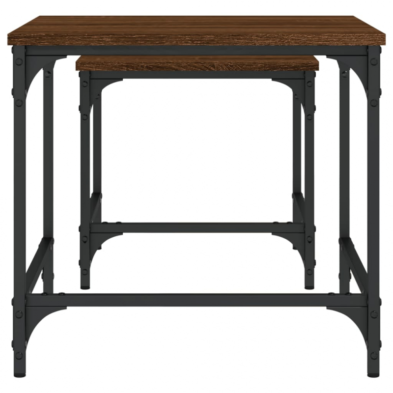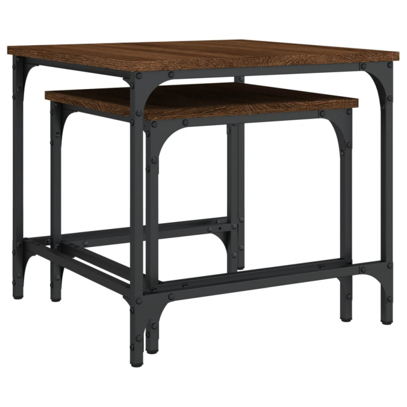 Diese beiden ineinander steckbaren Couchtische sind eine clevere Lösung für kleine Wohnräume oder jeden Bereich mit begrenztem Platzangebot. Mit seinem industriellen Design verleiht dieses Couchtischset deinem Wohnzimmer, Schlafzimmer oder Büro eine schicke Note. Langlebiges Material: Holzwerkstoff ist ein Material von außergewöhnlicher Qualität mit glatter Oberfläche, das sich durch Festigkeit, Stabilität und Feuchtigkeitsbeständigkeit auszeichnet. Aus Holzwerkstoff gefertigt, lässt sich der Couchtisch leicht reinigen.Nesting-Design: Das Nest aus Tischen hat verschiedene Größen, um deinen unterschiedlichen Bedürfnissen gerecht zu werden. Der kleinere Tisch kann in den größeren Couchtisch geschoben werden, wenn du mehr Platz brauchst.Stabile Tischplatte: Dank der stabilen Tischplatten bietet der Satztisch einen idealen Platz für Getränke oder andere Sachen, die du griffbereit haben möchtest.Vielseitige Funktion: Das Couchtisch-Set ist vielseitig nutzbar! Jeder von ihnen kann als Nachttisch im Schlafzimmer, als Beistelltisch oder als Couchtisch im Wohnzimmer und im Büro verwendet werden.Metallrahmen: Der Metallrahmen verleiht deinem Interieur eine industrielle Note und gewährleistet gleichzeitig Haltbarkeit und Stabilität.