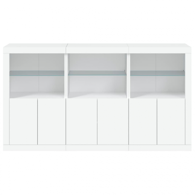 Dekoriere deinen Raum mit diesem modernen Sideboard mit LED-Leuchten, das sich leicht mit Möbeln in jedem Stil in deinem Zuhause kombinieren lässt. Langlebiges Material: Holzwerkstoff ist ein Material von außergewöhnlicher Qualität mit glatter Oberfläche, das sich durch Festigkeit, Stabilität und Feuchtigkeitsbeständigkeit auszeichnet.RGB-LED-Leuchten: Die Anrichte ist mit lebendigen RGB-LED-Leuchten ausgestattet. Mit verschiedenen anpassbaren Menüs kannst du die Farbe der Lichter mühelos wechseln und sie sogar auf automatische Anpassung einstellen. Die LED-Beleuchtung unterstreicht den modernen Look des Sideboards und trägt zu seinem trendigen Design bei.Viel Stauraum: Der Beistellschrank bietet viel Stauraum, um verschiedene Alltagssachen ordentlich und griffbereit aufzubewahren.Präsentation: Die stabile Oberplatte des Flurschranks eignet sich ideal, um Dekoartikel, Bilderrahmen oder Topfpflanzen zur Schau zu stellen.Praktische Türen: Schütze deine wichtigsten Sachen vor Staub, indem du sie hinter den Türen in diesem Beistellschrank verstaust. Gut zu wissen:Das Produkt verfügt über einen USB-Anschluss, für den eine zertifizierte 5V-USB-Stromquelle erforderlich ist (nicht im Lieferumfang enthalten). Achtung:Um ein Umkippen zu vermeiden, sollte dieses Produkt mit der mitgelieferten Wandhalterung gesichert werden.
