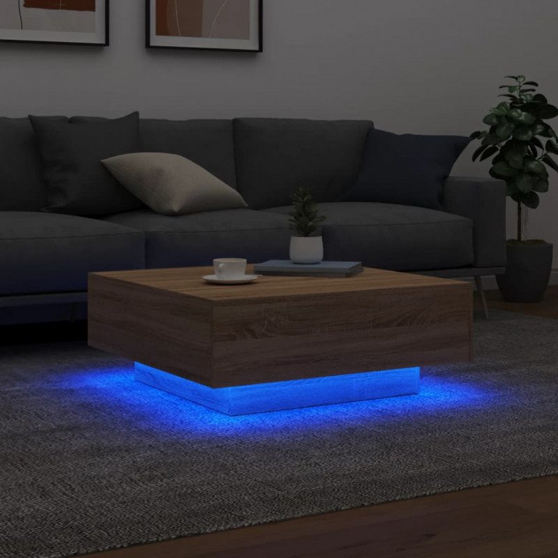 Couchtisch mit LED-Leuchten Sonoma-Eiche 80x80x31 cm