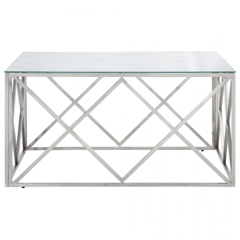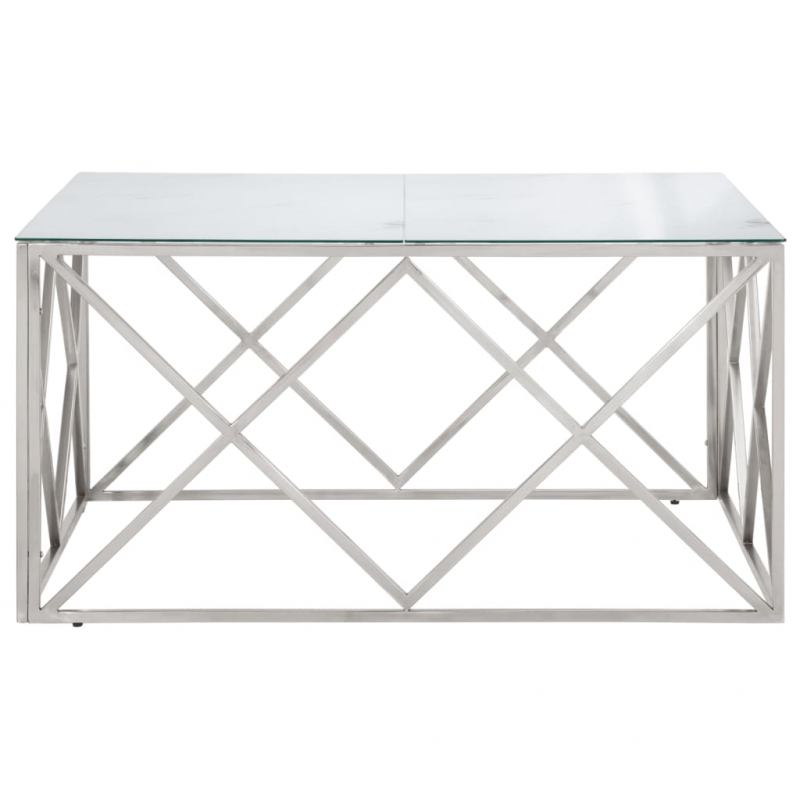 Mit seinem praktischen und optisch ansprechenden Design wird dieser Couchtisch ein echter Hingucker in deinem Zimmer sein. Glasplatte in Marmor-Optik: Die Tischplatte bietet einen sicheren und großzügigen Platz für Snacks, Getränke, Vasen, Obstschalen oder andere Dekoartikel. Robust und stabil: Das Edelstahlgestell verleiht dem Wohnzimmertisch Robustheit und Stabilität. Pflegeleicht: Dank seiner schmutzabweisenden Oberfläche lässt sich der Akzenttisch leicht abwischen und reinigen, um stets brandneu auszusehen. Schlichtes Design: Der Sofatisch weist ein schlichtes und modernes Design aus, das zu jeder Einrichtung passt.